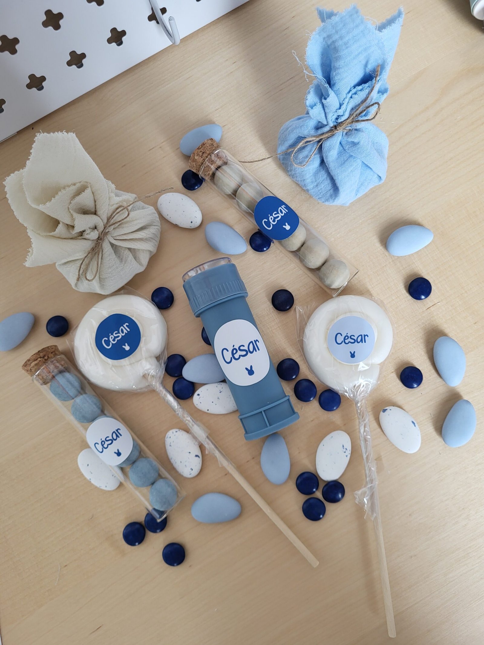 Producten: Bellenblaas, balpennen, bloembollen in proefbuis, suikerbonen in tetradoekje